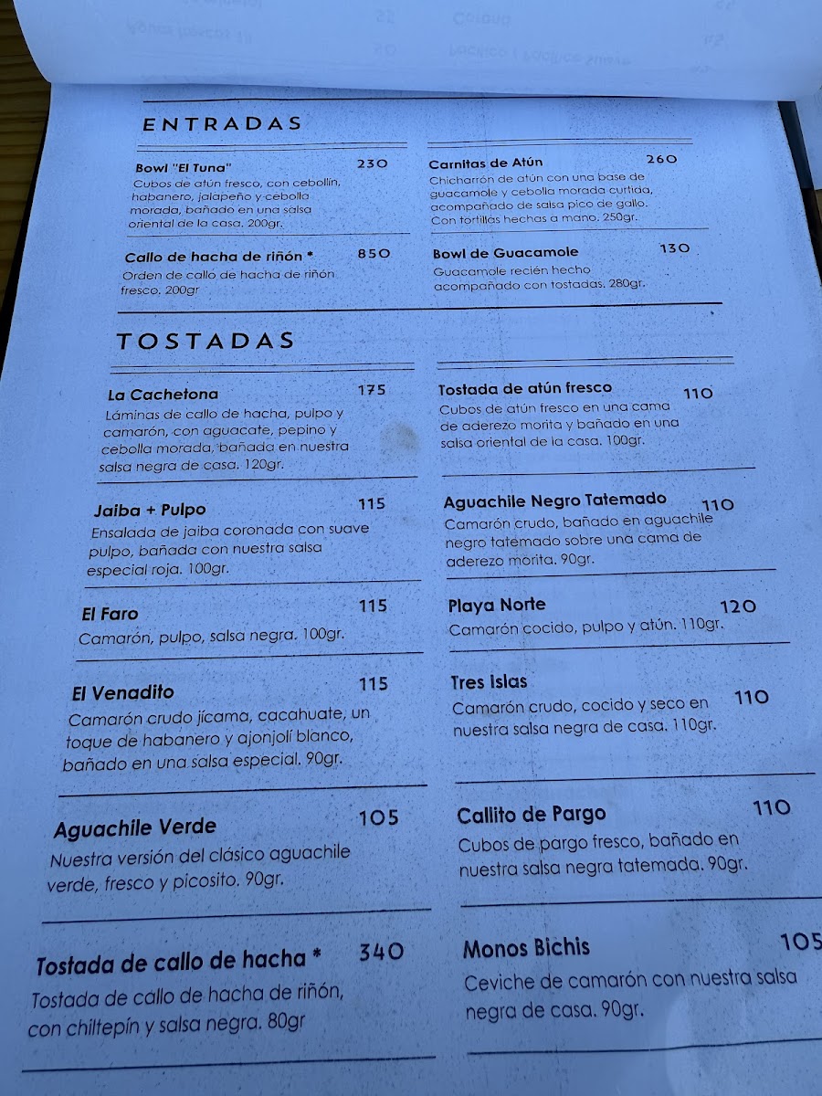 Tostada de callo de hacha de riñón, con chiltepín y salsa negra. Kidney scallop tostada with chiltepín and dark salsa. 80g of bold, fresh flavor in every bite.